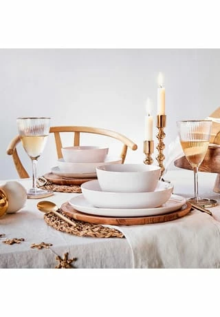 Mit unserer Geschirrserie Native im angesagten minimalistischen Design kommt der neue Trend auf den gedeckten Tisch! Das 8-tlg. Geschirr-Set aus Steinzeug in der Farbe Weiß ist handgefertigt in Portugal und hat eine dünne und hochwertige Scherbe mit einer klaren Formgebung. Durch die reaktive Glasur mit kleinen Kristalleinschlüssen wird jedes Teil der Serie zu einem echten Unikat. Der unglasierte Boden, der das Rohmaterial zum Vorschein bringt, sorgt für einen formvollendeten Manufaktur-Look. Jedes Teil der Serie ist spülmaschinen- und mikrowellengeeignet.