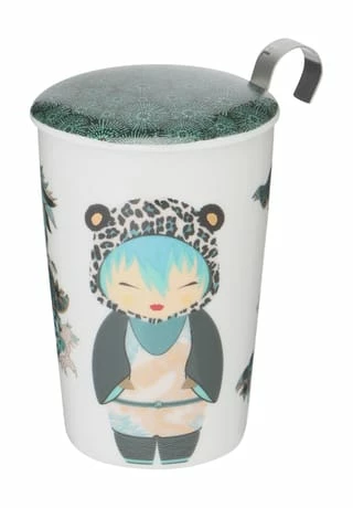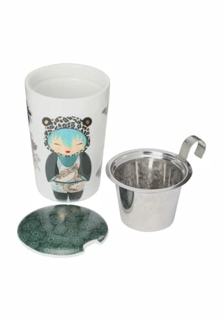 Porzellanbecher, Edelstahlsieb, Porzellandeckel, Geschenkverpackung