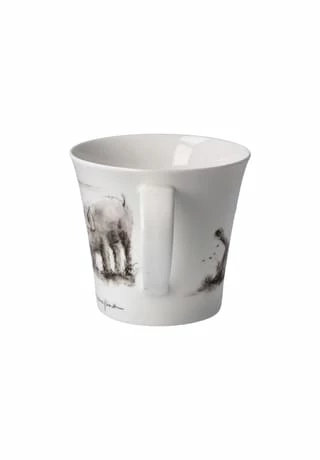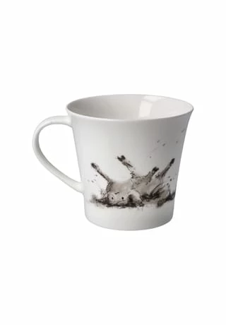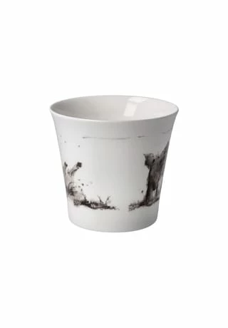 Für die Frühjahrsneuheiten 2022 standen Tiere um Haus und Hof auf dem Lande „Modell“ für die Illustrationen des Künstlers Peter Schnellhardt. Spielende und vor Freude quiekende Schweinchen, weidende Kuhherden, muntere Esel und eine Horde neugieriger Schafe wurden zu Papier gebracht und zieren ansprechend Tassen aus Fine Bone China. Naturgetreu und gekonnt in Szene gesetzt, erfreuen sich die Motive großer Beliebtheit bei Groß und Klein.Coffee-/Tea Mug – Schwein gehabt! Spülmaschinengeeignet, doch um die Brillanz der Farben zu schonen ist Spülen per Hand empfehlenswert.Peter Schnellhardt, ein Künstler aus dem oberfränkischen Bad Rodach, der spontan aus einer Stimmung heraus, seine Ideen zu Papier bringt. Geboren 1961 in Coburg, arbeitet er nach seiner Ausbildung zum Designer(Spielzeugdesign)freiberuflich als Zeichner, Modelleur und Webdesigner. Als Modelleur entstand für die Fa. Goebel, im Jahr 2000, die für Werbezwecke entwickelte 2 Meter große Hummelfigur „Wanderbub“. Als Zeichner wurden Buchillustrationen, Grafikarbeiten und Zeichnungen für verschiedene Auftraggeber verwirklicht. Zeichnungen und Malerei waren schon vor seiner Ausbildung zum Spielzeuggestalter seine Leidenschaft. Hierbei hat er sich im Laufe der Jahre einen ganz eigenen Zeichenstil angeeignet und eigene Figuren entwickelt. Die Motive entstehen spontan und haben oft etwas Spielerisches und Humorvolles, wobei seine 3 Katzen sicherlich hilfreiche Ideengeber sind.
