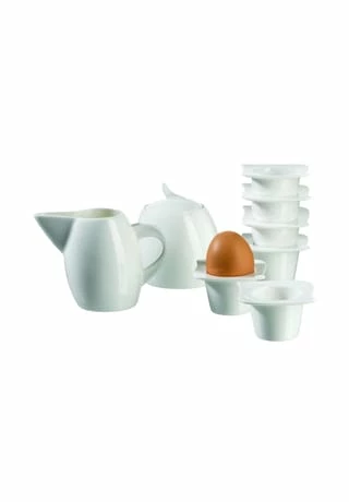 Das zeitlose Zusatzartikel-Set »LA MUSICA« verleiht dem Tisch Stil. Für mehr Anmut und Eleganz steht das stilvolle Geschirr. Es wird aus hochwertigem Durable Porzellan gefertigt und bietet ein optimales Zusammenspiel aus Qualität und Ästhetik. Geschwungene Formen verleihen dieser Serie einen filigranen und zarten Charakter. Sowohl im Alltag als auch zu besonderen Anlässen ist es eine Bereicherung. Dieses Set der Serie »LA MUSICA« punktet mit hohen Qualitätseigenschaften und ist weiterhin spülmaschinen- und mikrowellengeeignet. Dieses Set besteht aus: 1 x Zuckerdose 1 x Gießer 6 x Eierbecher Die perfekte Ergänzung zu Ihrem Service der Serie La Musica.