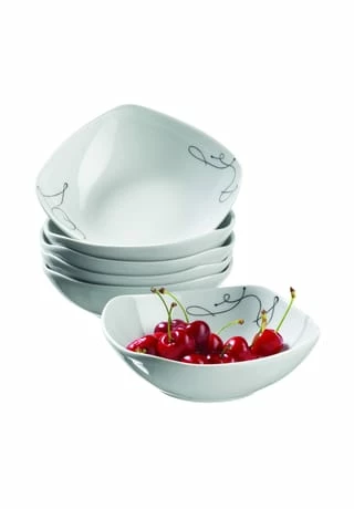 Das 6-teilige Müslischalenset »Chanson« von MÄSER bereichert das Tischambiente mit seiner außergewöhnlichen Formgebung und einem zeitlos schönen Dekor. Sehr modern und dennoch unaufdringlich elegant macht es aus jedem Esstisch eine stilvoll gedeckte Tafel und lässt sich mit unterschiedlicher Tischwäsche und entsprechenden Dekorationen immer wieder neu inszenieren. Jedes Teil ist aus schönem und dennoch robustem Porzellan gefertigt und unkompliziert sowohl spülmaschinen- als auch mikrowellengeeignet. Dank solider Qualität, sorgfältiger Verarbeitung und edler Optik ist das zeitlose Kombiservice »Chanson« eine repräsentative Wahl und für den täglichen Gebrauch ebenso geeignet wie für den festlichen Anlass. Dieses Set besteht aus: 6 x Müslischale à 15 cm Die perfekte Ergänzung zu Ihrem Service der Serie Chanson
